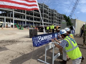 Last Thursday, February 9, the Visiting Quarters Lodging Facility at Tyndall Air Force Base in Panama City, Florida, celebrated its topping out with a ceremonial beam signing and installation. Our project team, the USACE Mobile District project team, and members of the U.S. Air Force were all in attendance.
